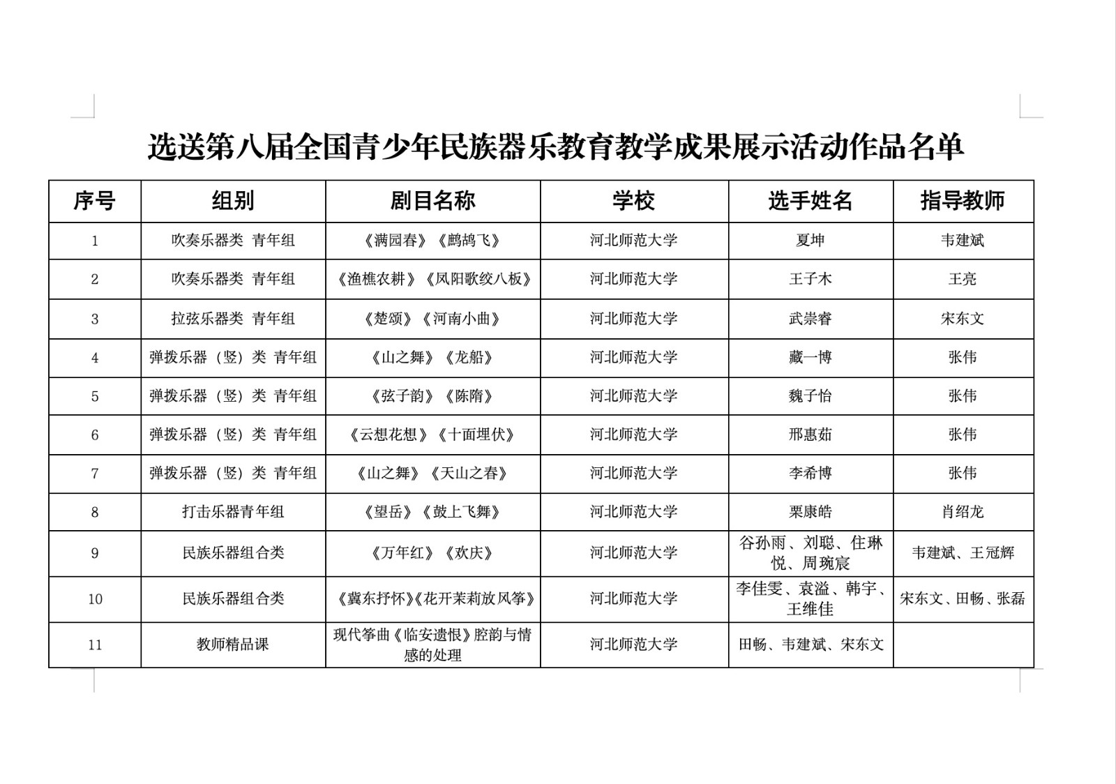 河北省中高等公司民族器乐专业公司产品成果展示活动由河北省文化和旅游厅与河北省教育厅共同主办。展示活动主要内容包括员工展示和教师精品课展示。其中员工展示分为民族乐器独奏和小型民族乐器组合两大类,目的是推出一批优秀青少年民族器乐演奏人才。教师精品课展示目的是推出民族器乐专业教师课程教学的优秀经验与改革成果。共有来自省内30个院校的160个项目参赛。
